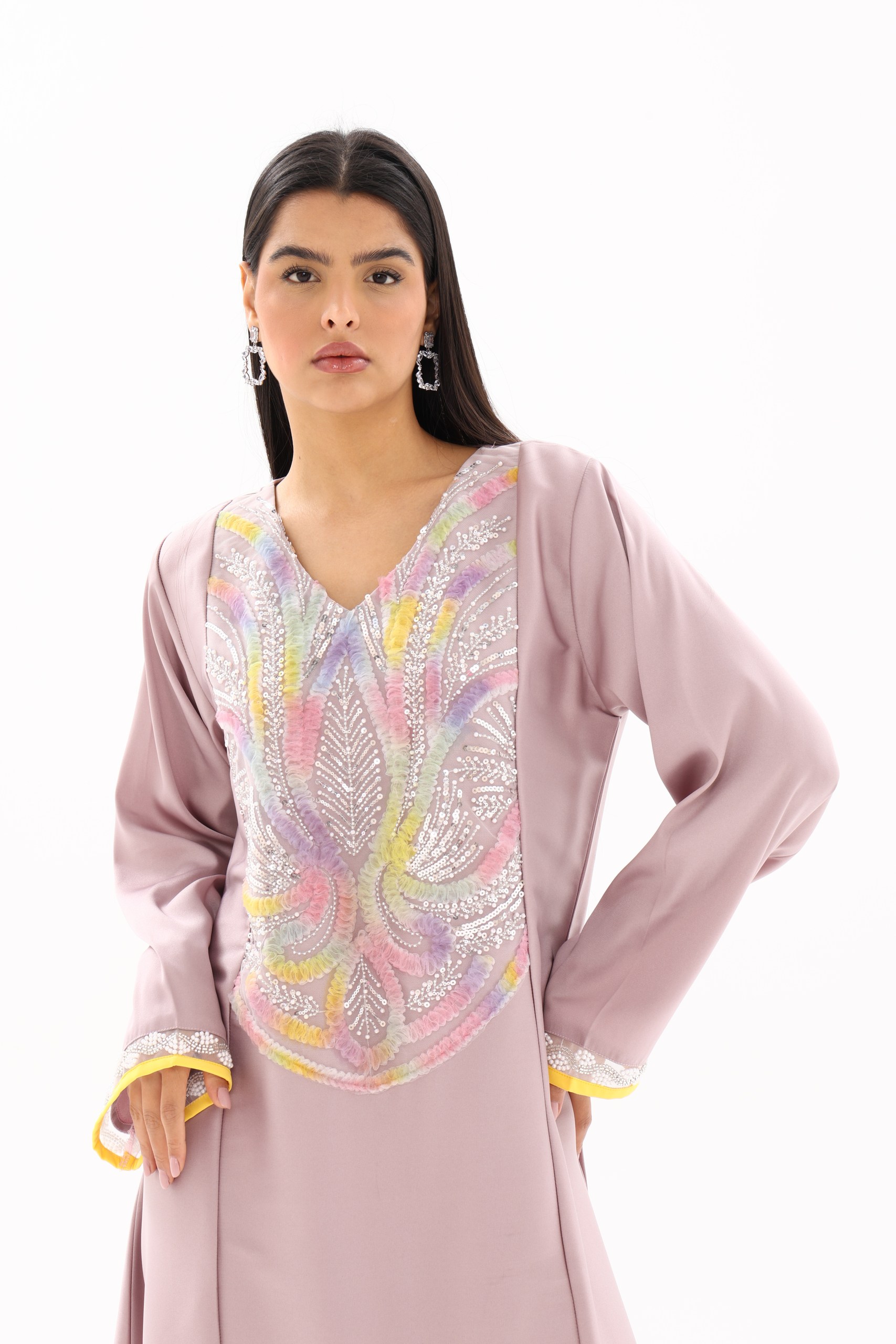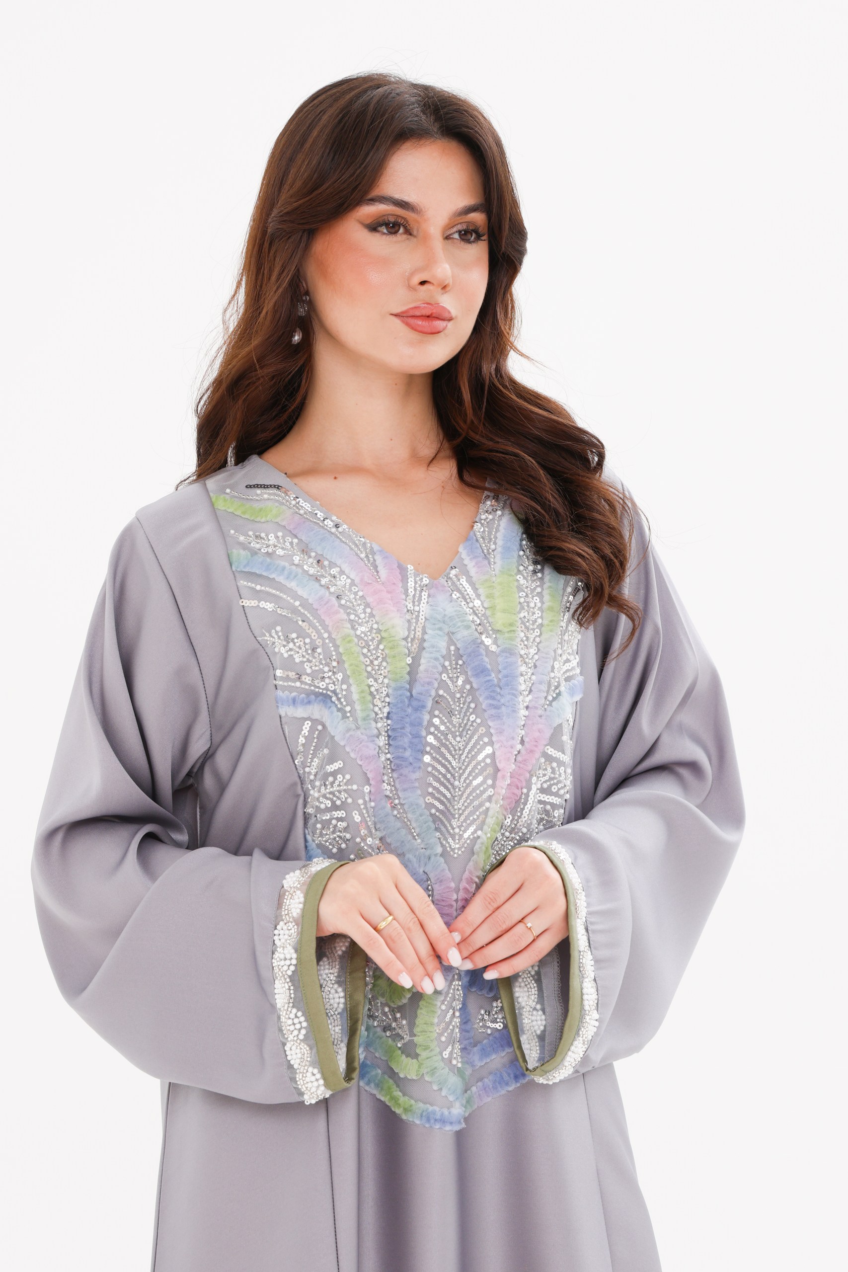 Step into effortless elegance with our latest Jalabiya from the AYAT collection. Crafted from premium-quality, breathable fabric, this design features exquisite multicolor embroidery that adds a touch of sophistication and charm. Perfect for casual gatherings, evening wear, or special occasions, it offers unmatched comfort with a graceful silhouette—tailored for the modern woman in the UAE who values both style and modesty.